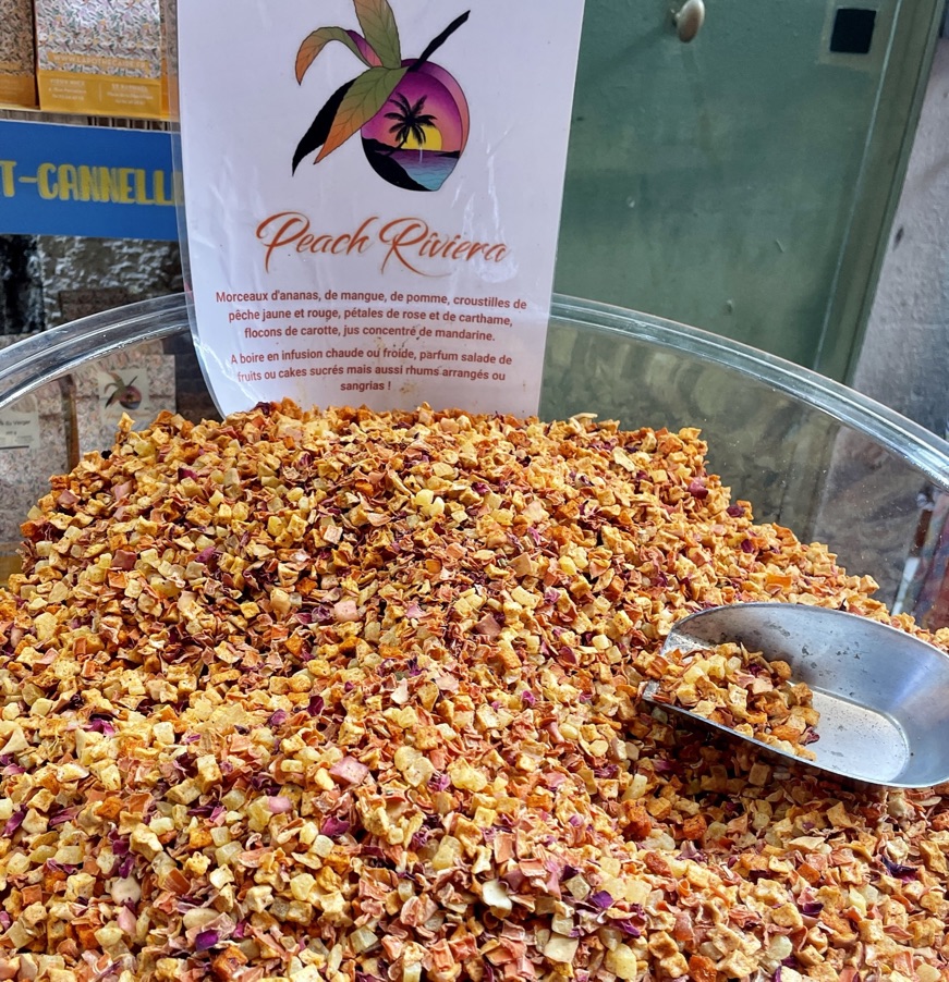 We first discovered this little treasure while wandering the labyrinth that is Vieux Nice several years ago. The shop is simply charming – warm and inviting. Sweet floral aromas from their tisanes lure you over. The mélange of delicate leaves, buds and fruits paint a tapestry to delight all of the senses. And that is just the entrance! Inside the boutique feels like an old-world apothecary, yet everything is fresh and waiting to be discovered. Spices, balsamic vinegars, flavored rums and cocktails … all of the things that make life delicious!