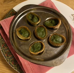 Another local favorite — poached eggs in a red wine sauce, usually served with plenty of bread for dipping.