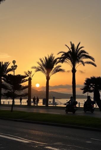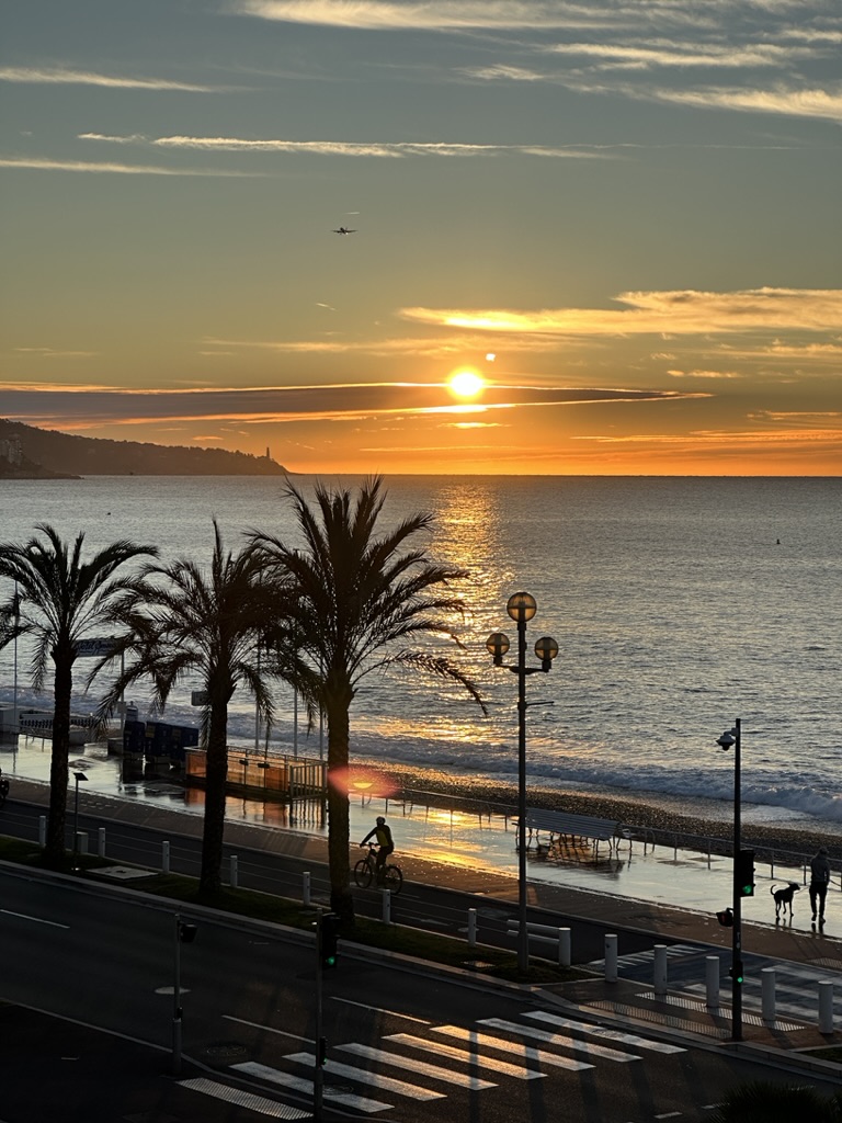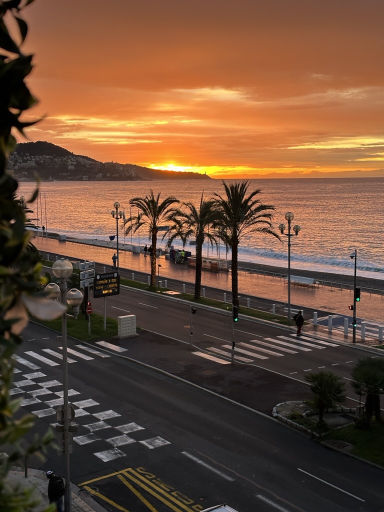 Sunrise in Nice is un véritable spectacleMon petit café in hand, I settle into my well-positioned chair on the balcony to watch the gentle déroulement of events.