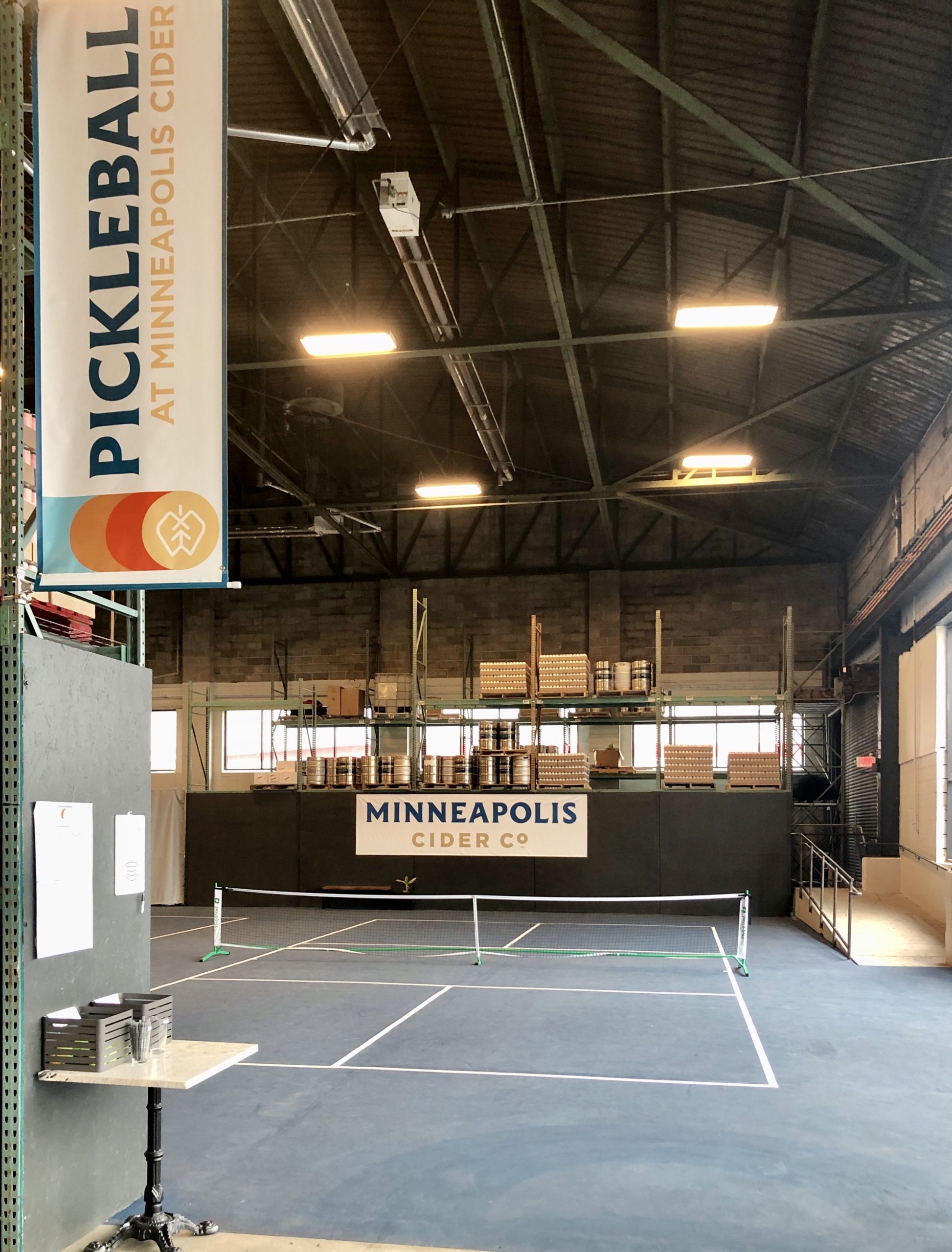 Minneapolis Cider Co is the collaboration of 3 young men with great vision. It begins with David, who had studied abroad in England. Not a huge fan of beer, he discovered that England is also a large producer of cider, which he loved. When he returned to the states, he and classmate Jason came up with a “cider taproom” concept for a senior project. With the addition of Rob, who had been working in the apple industry, they decided to bring the dream to fruition. They moved into this large warehouse, teaming with character in May 2019. They had plenty of room to make their cider, have space for people to mingle, and add a pickleball court!