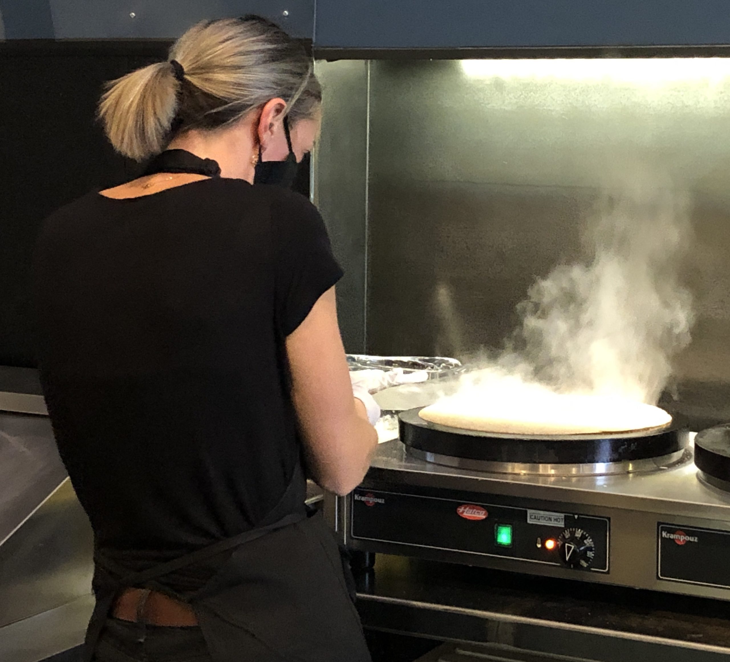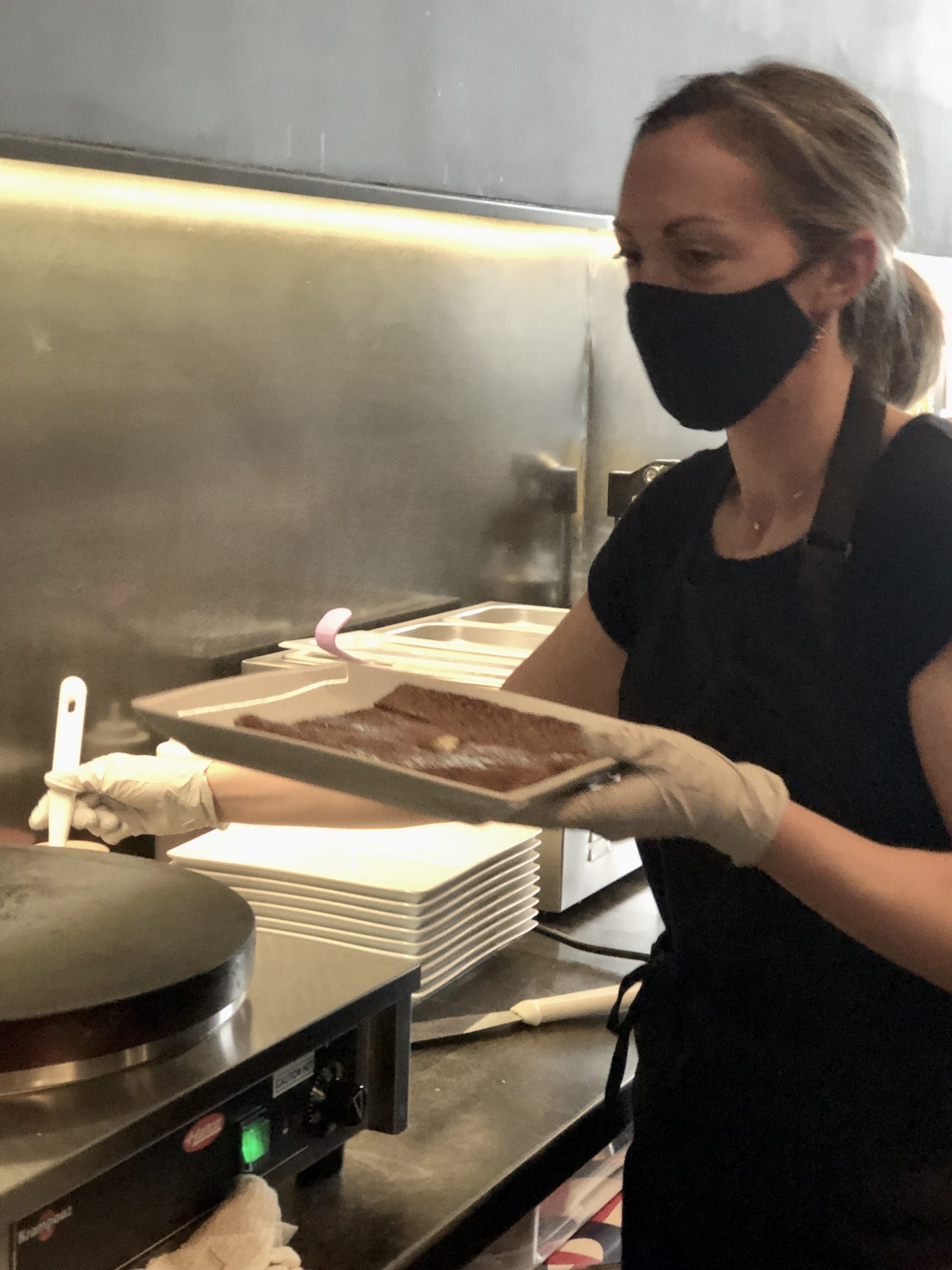 I started Oh Crêpe in 2018. I do catering: graduation parties, birthdays, corporate events and then I also attend Farmers Markets (although I decided to not do them this summer), Christmas Markets, fairs, festivals etc. I am still doing small private events during Covid but all the big public events have been cancelled. This was a perfect time for me to be able to focus on the opening of the crêperie as I am not as busy.