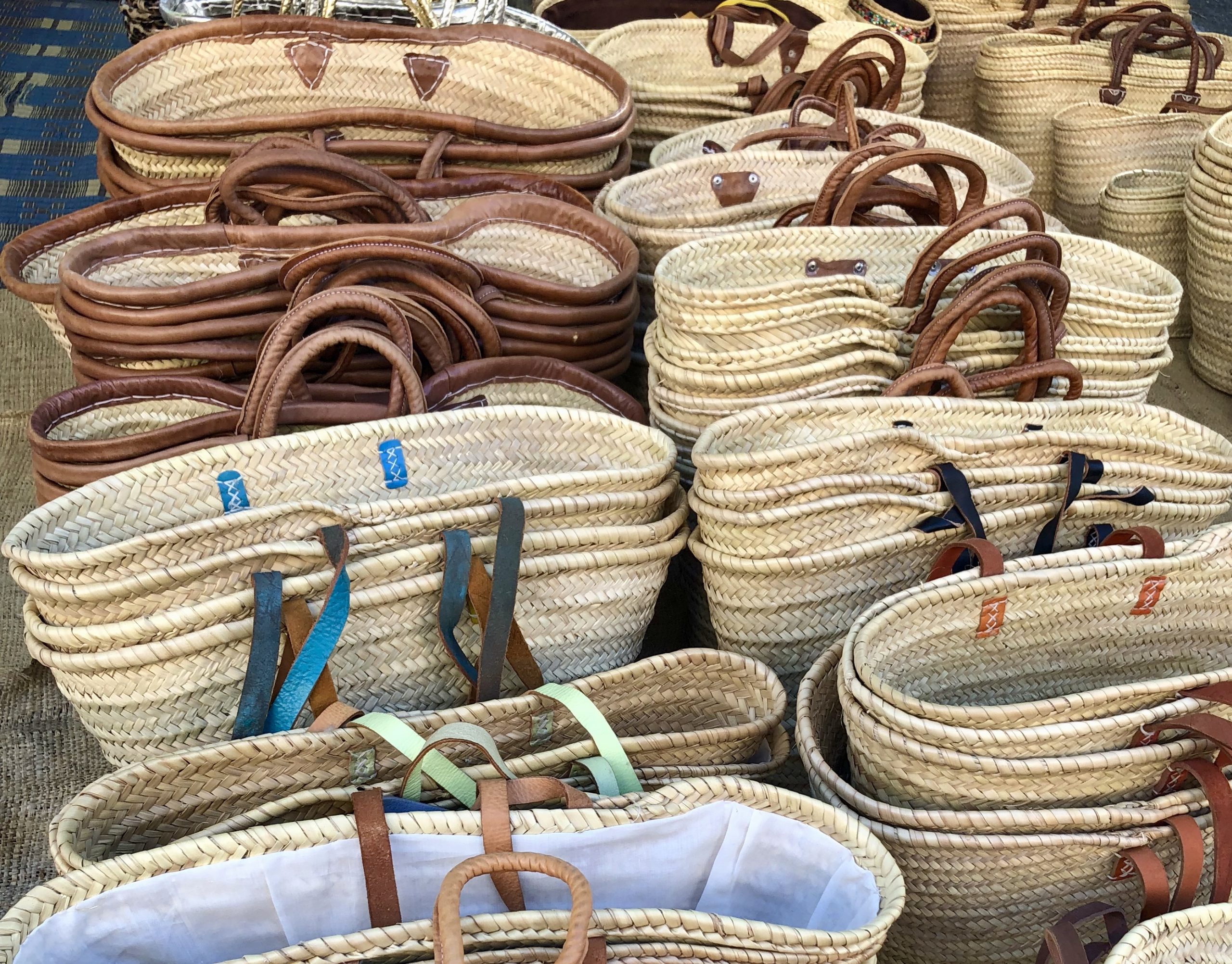 - Woven baskets, leather goods, and unique antiques